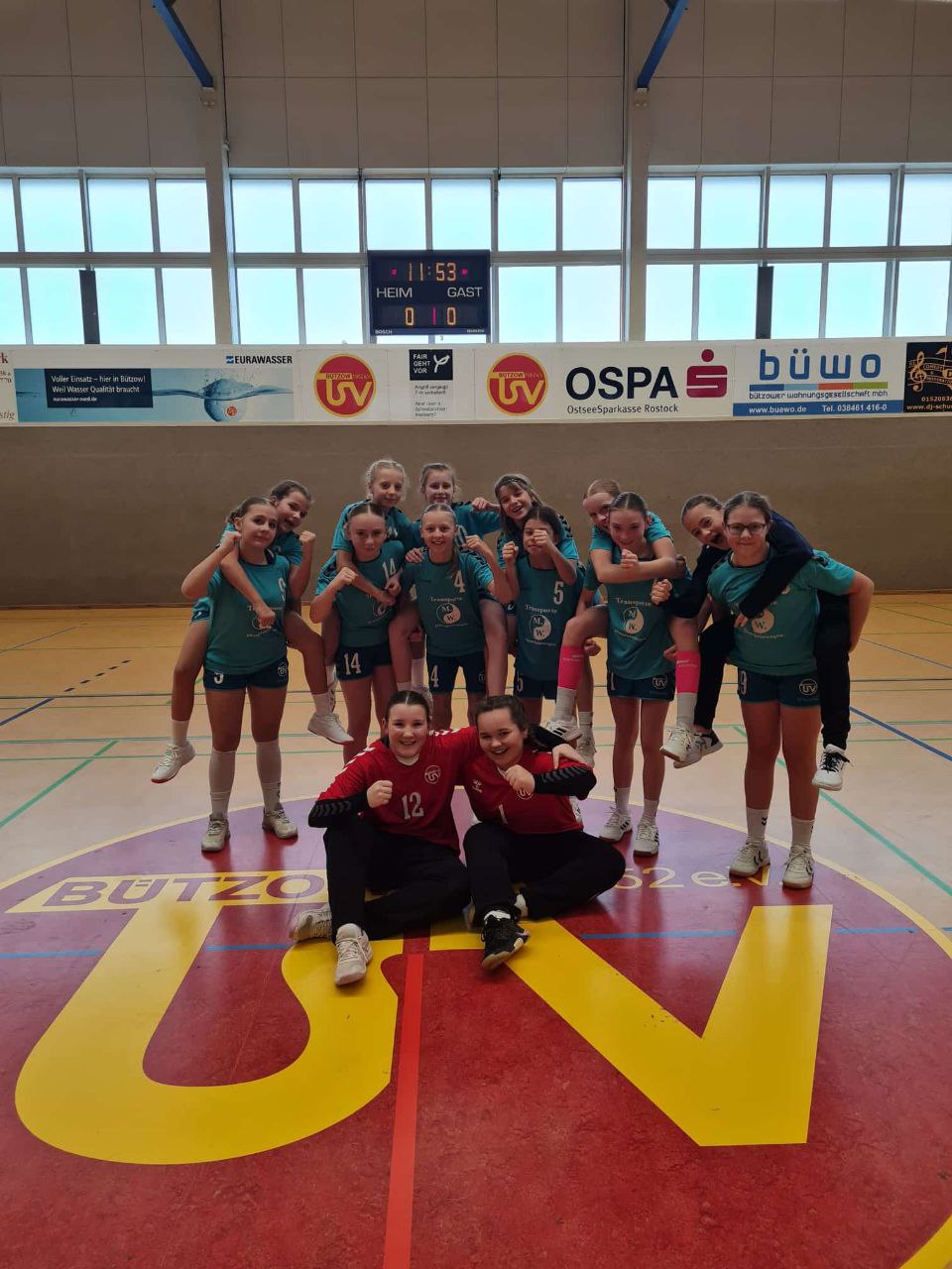 Die D-Mädels des TSV empfingen gestern die zweite Mannschaft der Eintracht Rostock. In der Hinrunde konnten in Rostock die beiden Siegpunkte mit nach Bützow gebracht werden. Mit einem 3:0-Lauf starteten unsere Mädels in die Partie. Dann schlichen sich Fehler im Abschluss ein und auch die Abwehr ließ unnötig Lücken zu. Nach einer kurzen Unterweisung in der Auszeit lief es dann besser. Beim 14:4 ging es in die Halbzeitspause. In der zweiten Hälfte wurden die Rostockerinnen ruppiger. Dennoch konnten die TSV’lerinnen ihre Tore erzielen. Lediglich die 7m-Ausbeute ließ an dem Tag zu wünschen übrig (von 8 sind nur 3 verwandelt worden). Nächsten Samstag wird das abgebrochene Spiel gegen den RHC II nachgeholt. Damit wäre endgültig die Hinrunde beendet.